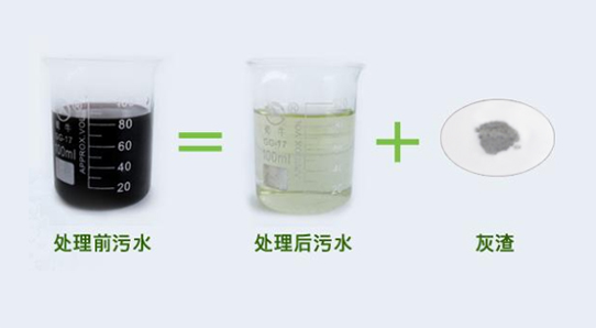 公司研發的工業污水處理系統,把污水一步到位的處理到可達標排放的中水和不含任何污染物的灰渣